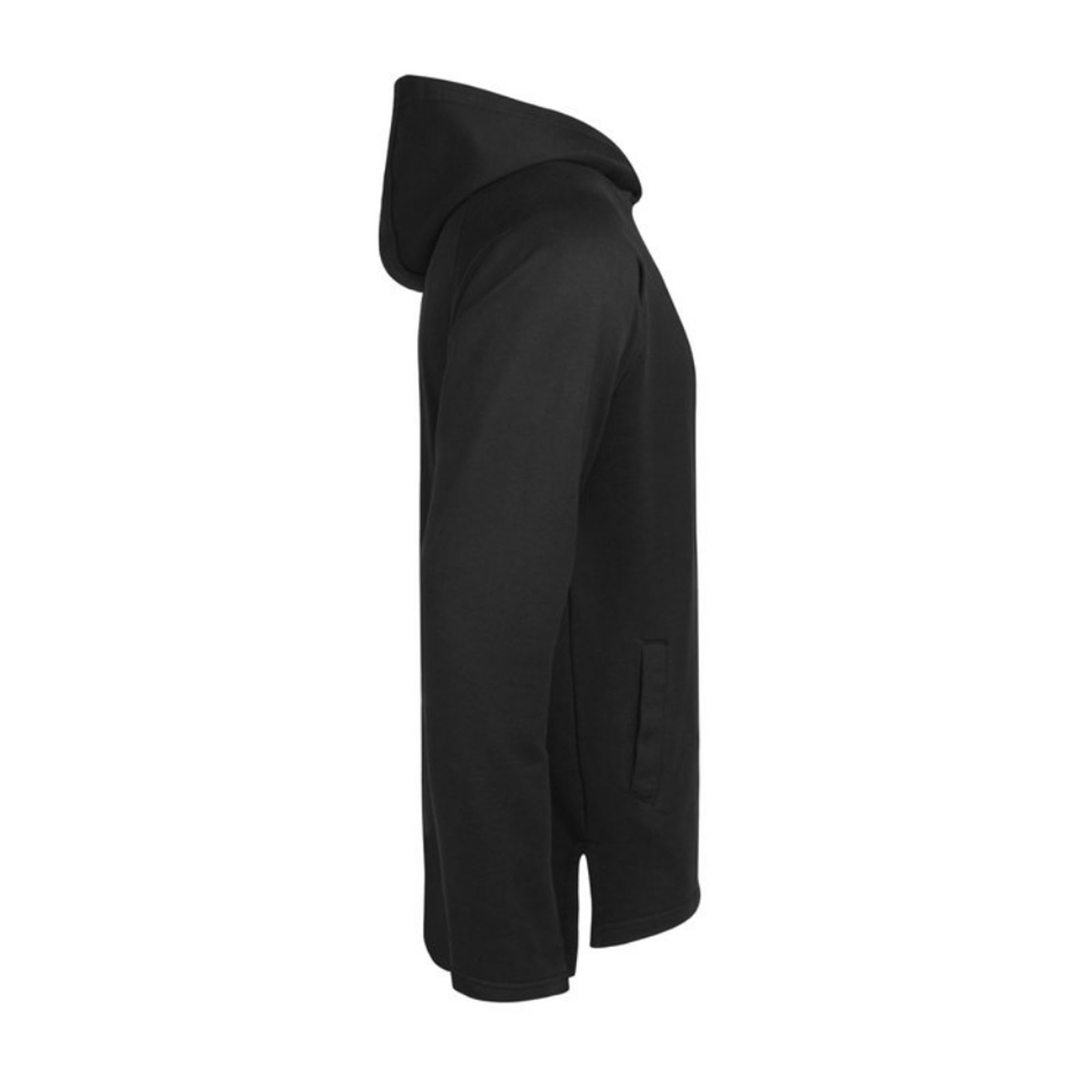 80 % Bio-Baumwolle, 20 % Polyester. Zwei Eingrifftaschen auf der Vorderseite, fester Bund, länger geschnittener Rücken, Seitenschlitze, Doppelnaht an Ärmelenden, Kapuze.